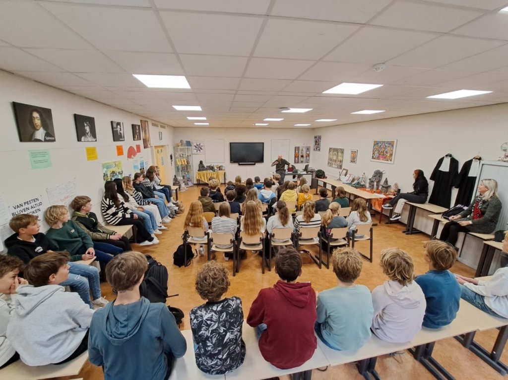 Op donderdag 13 oktober had het Dorenweerd College een aantal bijzondere “iemanden” te gast. Dit waren vier mensen die deel hebben genomen aan het programma “Rot op met je religie”, opgenomen in 2016 in opdracht van de EO.