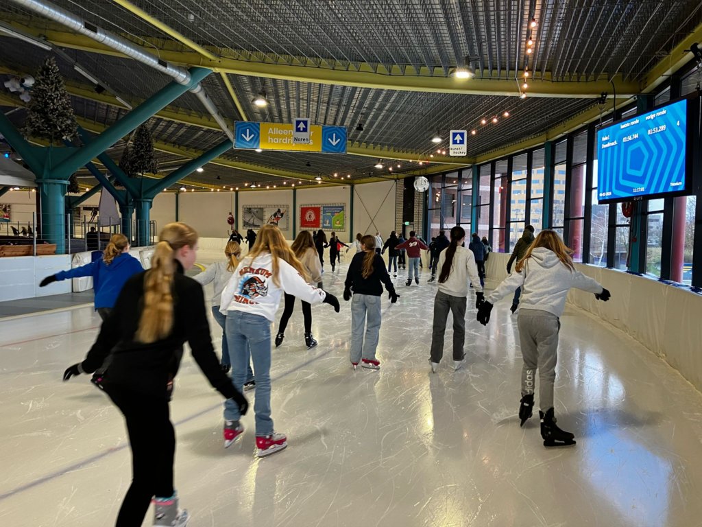 Op dinsdag 6 februari zijn alle brugklasleerlingen, met hun mentoren, gaan schaatsen in het Triavium te Nijmegen voor het goede doel. Per rondje konden leerlingen sponsorgeld binnenhalen om het Dorenweerd Alpe d’HuZes team te ondersteunen.