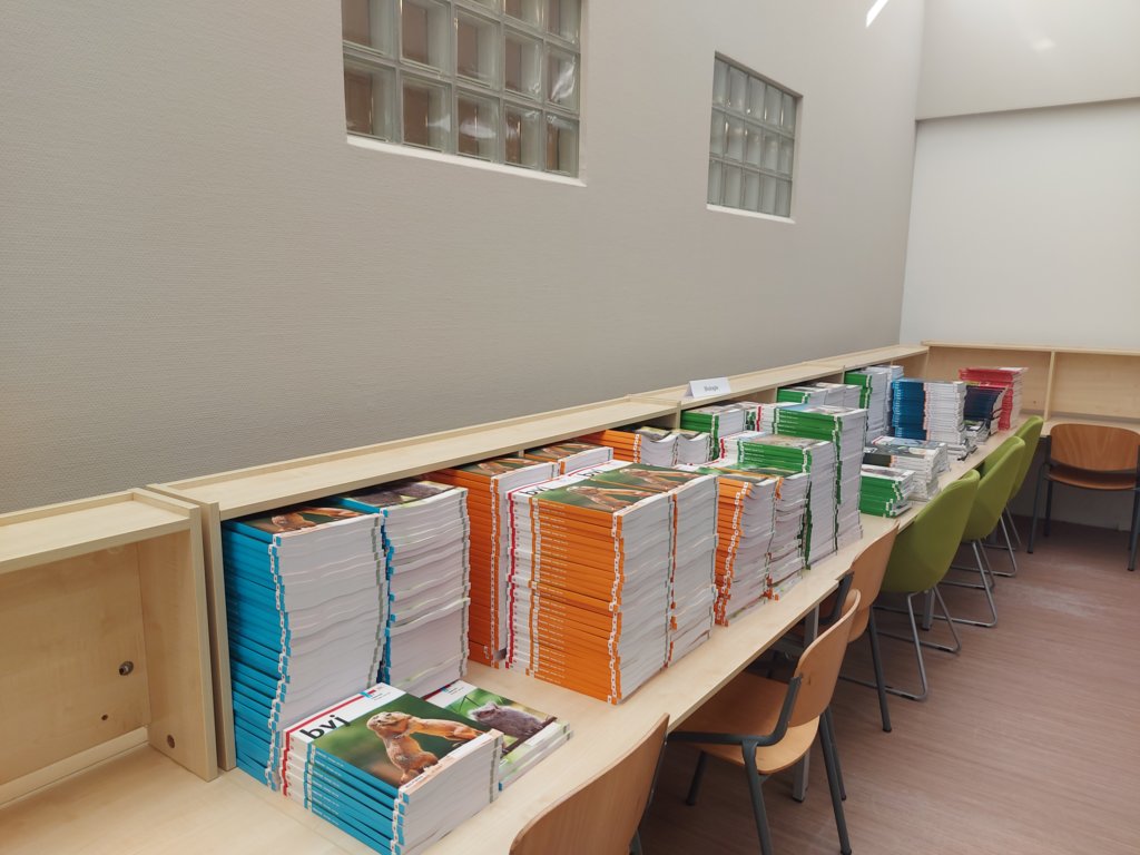 De laatste week van de vakantie is er druk gewerkt om alles in en rondom het gebouw weer piekfijn in orde te maken. Er zijn nieuw scooter-/brommer parkeerplekken gerealiseerd en alle schoolboeken zijn geleverd en gesorteerd zodat deze de eerste lessen kunnen worden uitegdeeld.