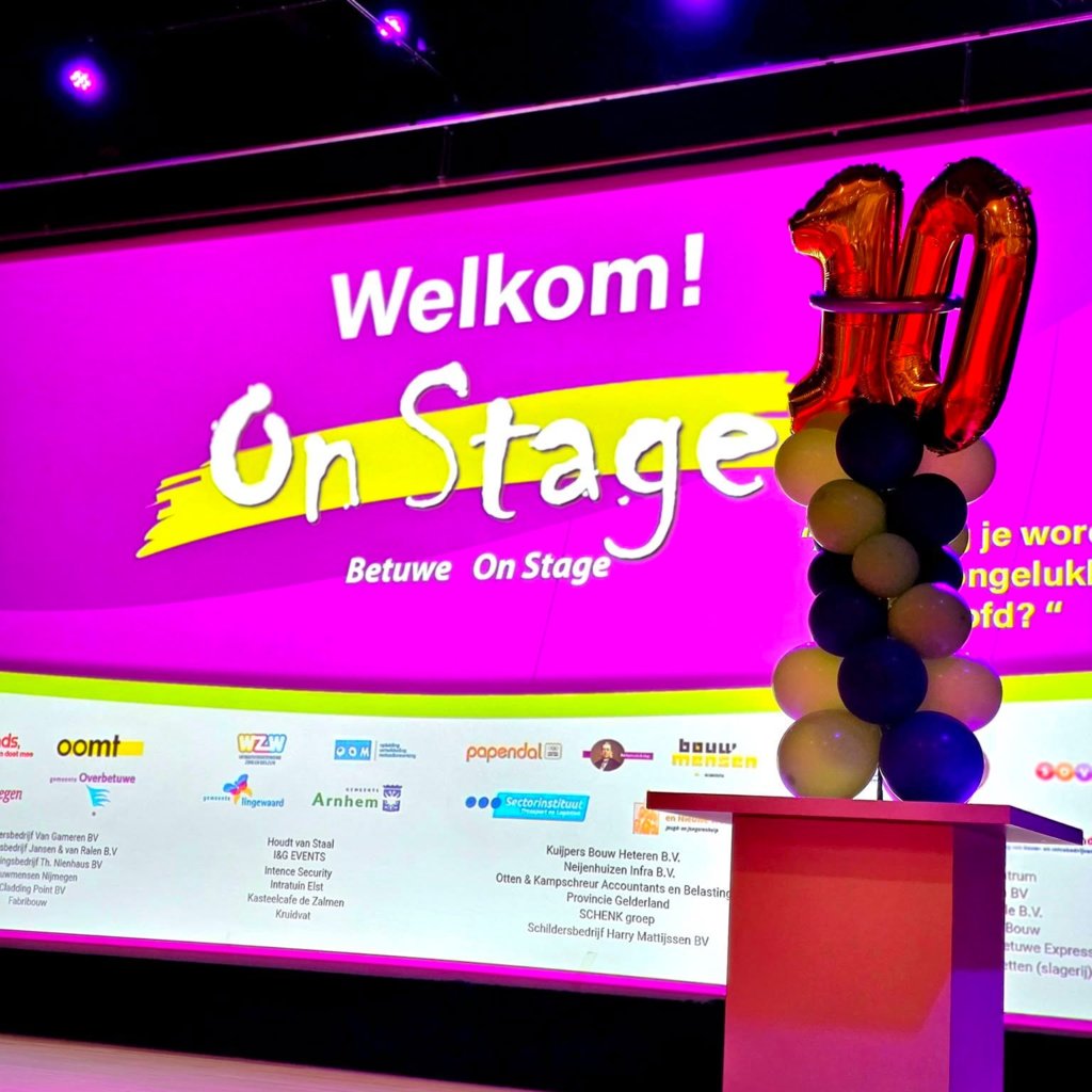 Deze editie van het Beroepenfeest van Betuwe On Stage had een gouden randje. Ze vieren namelijk het 10e editiejaar! Ruim 800 leerlingen kwamen vandaag onder luid applaus, met muziek, via een rode loper en onder aanmoediging van presentator André Accord de eventzaal van Papendal binnen. Wethouders Evert Westerbeek van gemeente Overbetuwe en Nick Hubers van gemeente Lingewaard openden de rondes met een klap op de gong. Hét moment voor de leerlingen om in gesprek te gaan met de beroepsbeoefenaren. Na deze toffe dag weten de leerlingen meer over allerlei beroepen en hebben zij hun netwerk uitgebreid.