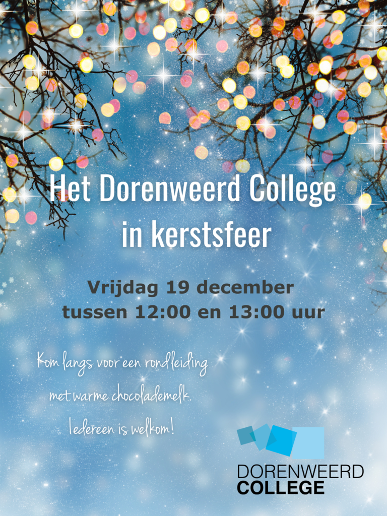 Op vrijdag 19 december tussen 12:00 en 13:00 uur opent het Dorenweerd College haar deuren voor ouder(s), verzorger(s), buurtbewoners en andere geinteresseerden.