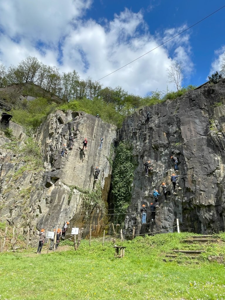 Donderdag stond iedereen een hele leuke dag te wachten, namelijk een adrenalineparcours op de rotsen met diverse uitdagingen! Op vrijdag hebben de leerlingen de grotten van du Comblain bezocht welke erg indrukwekkend waren.